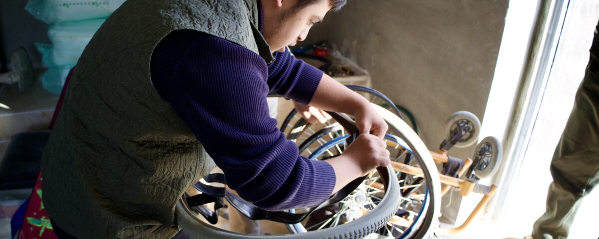 The work began with repairing wheelchairs that had been sitting in the storage area – too broken to use but too valuable to throw away. Ahmad, a young man with a hearing disability and the centre’s bus driver, quickly displayed a talent for creative problem-solving, fitting parts from one wheelchair to complete another. Muhammed, a young teen with Down’s Syndrome, discovered a whole new world of opportunity. It was his first time fitting tyres onto wheelchairs, tightening the nut on a bolt, and thinking through which size spanner to use. It was his first time experiencing the close camaraderie that comes from working together on a project over several days or even weeks – with all the humorous mishaps and the joys of achievement. Perhaps it was also his first time being mentored by an adult man willing to explain patiently and give him the chance to try out new skills.